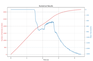 Numerical simulations provide both qualitative and quantitative insight into particle transport. The qualitative analysis helps understand the flow patterns, while the quantitative results allow tracking the number of particles and calculating the mass flow rate at each time step. This is key for evaluating injection performance and optimizing industrial processes under realistic operating conditions.